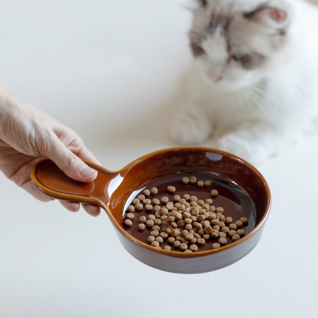 Ceramic Cat and Small Dog Feeding Bowl with Handle
